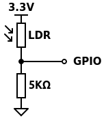 Here is the simple circuit used to measure the quantity of light built around a light dependant resistor (LDR) and a fixed resistor. The 5K value of the fixed resistor is just an indication, it is not critical. Besides, I do not know the characteristics of the LDR. Any of the 11 I/O pins of the XIAO could be used, I chose A3.