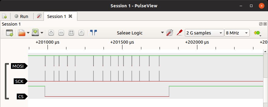 Here is the capture of three pins of the XIAO involved in the transmission of the message on the SPI bus.