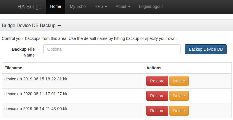 And that is basically it, HA Bridge is now functional. You can click on the My Echo button at the top of the page to let Alexa discover all the devices that HA Bridge now makes available.