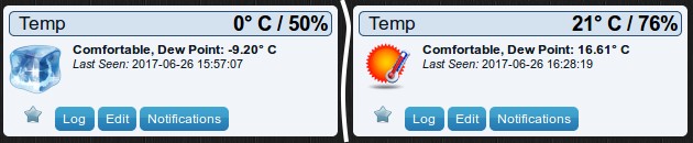 Puis, après un court délai, l'image du capteur devrait maintenant refléter les nouvelles valeurs pour la température, l'humidité et le niveau d'humidité.Au lieu d'utiliser un navigateur Web, un message MQTT peut être envoyé en supposant que le matériel MQTT a été installé dans Domoticiz.