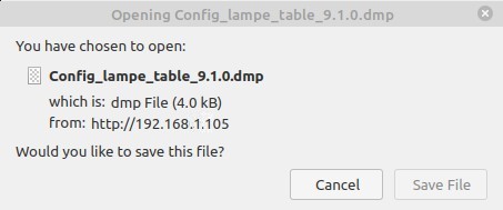 will bring up the last dialog shown to save the configuration file without manually clicking on buttons in a GUI. Note that many sources show a questions mark at the end of the path (http://<ip_address>/dl?). However a question mark is used at the start of an optional query, and since there is no query I did not include it. Nevertheless /dl and /dl? both work.