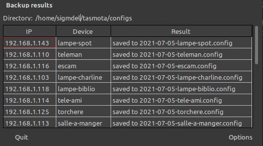 As a copy of each Tasmota configuration is saved to a file, its name is added to the list in the backup result screen.