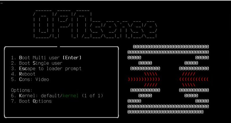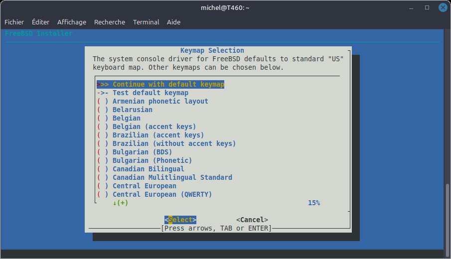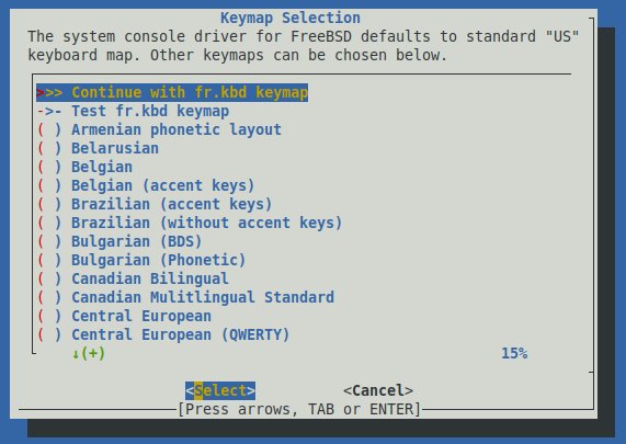 L'assistant d'installation de FreeBDS s'affiche automatiquement à l'écran, qu'importe qu'on utilise la console ou une session SSH.