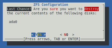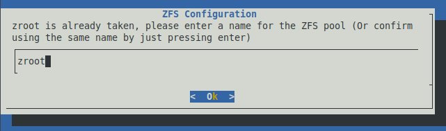 Note : Si un système de fichiers ZFS existe déjà sur le lecteur du mini PC alors le message suivant est affiché.