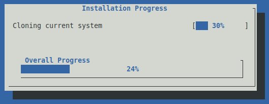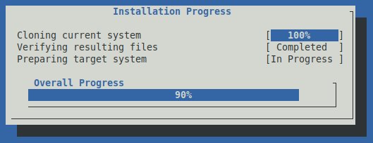 Maintenant il faut être patient pendant que le système est installé sur le lecteur du mini PC. Au moins, il y a une indication du progrès réalisé en temps réel.