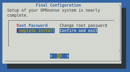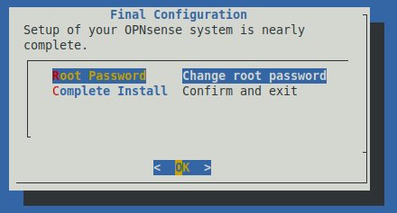 C'est très important de changer le mot de passe, mais on peut remettre à plus tard lors de la configuration de OPNsense. Si on choisit d'aller de l'avant ici, il faudra entrer le mot de passe désiré à deux reprises et de s'assurer de pouvoir s'en rappeler plus tard.