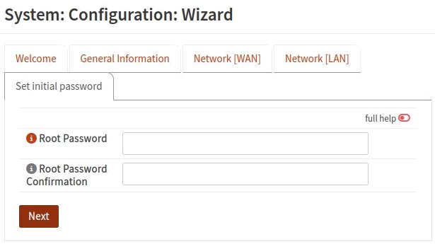 Le mot de passe a déjà été modifié lors de l'installation d'OPNsense. On peut le modifier de nouveau ici. Plus tard, le mot de passe peut être modifié sans passer par l'assistant de configuration depuis la page Lobby: Password