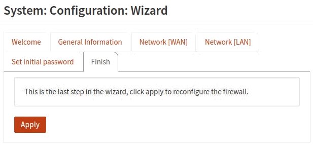 Il y a des exceptions, mais très souvent une modification de la configuration du pare-feu ne sera faite qu'après avoir appuyer sur un bouton [Apply] comme on le voit ci-dessus. Après l'activation de ce bouton, l'assistant de configuration effectue les changements spécifiés.