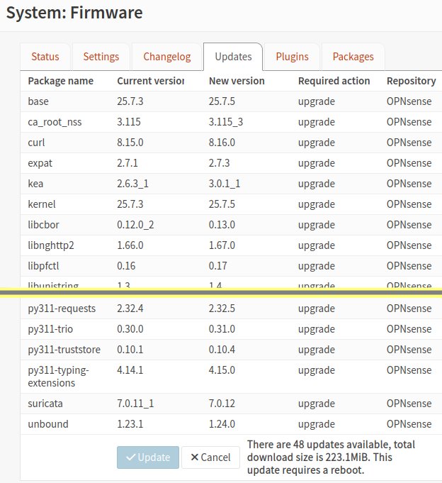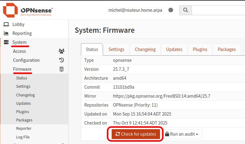 Si les tests ont été réussis, on peut et on devrait mettre à jour OPNsense. Voici comment procéder.