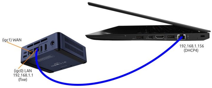 igc1et que le réseau LAN est connecté au port nomméigc0. On ne sait pas d'emblée lequel des ports Ethernet du mini PC estigc0et lequel estigc1.Si l'ordinateur a des cartes réseau de Realtek plutôt que d'Intel, les ports sont nommés