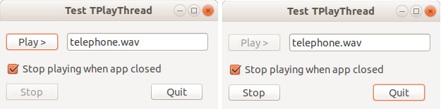 I did run into synchronisation problems. Remember that an application is itself a thread so that when a TThread is created, it has to be careful if it interacts with any user interface object or anything that in turn accesses application resources. But my biggest problem was with memory leaks when interrupting the sound player. I found the detailed help I needed in the Lazarus forum. And I have to thank search engines because I have yet to learn how to use the forum search engine efficiently. I strongly recommend the four pages of entries on the topic Playing with thread, memory leaks.
