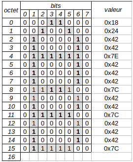 DEL_GLYPHn'est pas définie, le glyphe de U+007F tel que défini dans le fichier TTF sera utilisé, quel qu'il soit. - Ligne 75. Choisir un fichier d'en-tête contenant le tableau
