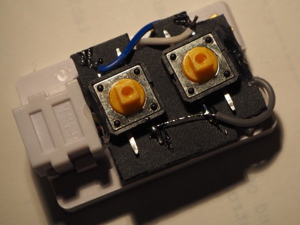 connexion de chacun des bouton-poussoir est soudé à un fil (bleu et blanc