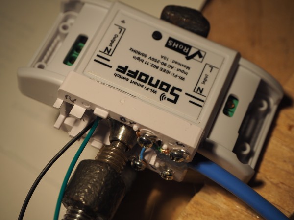 Il y a le bouton-poussoir dont le bout de la tige apparaît sur la face du Sonoff. Il est minuscule, presque invisible, et pas très commode. Sur certains commutateurs, je dois utiliser un ongle pour activer le bouton, car il ne dépasse pas suffisamment. À cet égard, les modules X10 étaient intéressants, car on pouvait toujours allumer ou fermer une lampe avec son interrupteur normal. Mentionnons aussi que le bouton-poussoir du Sonoff sert à d'autres fins dans le logiciel de Theo Arends. Par inadvertance, on peut facilement changer le mode d'opération du commutateur (voir Button usage). Conséquemment, il faut souvent prévoir une autre façon d'allumer un commutateur Sonoff de façon manuelle.