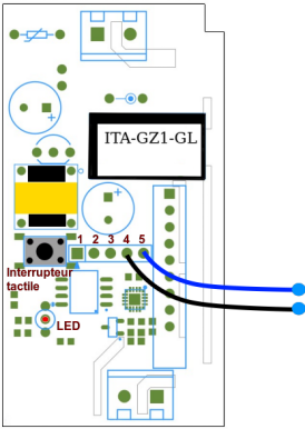 deux fils reliés aux broches 4 et 5 du connecteur de programmation.