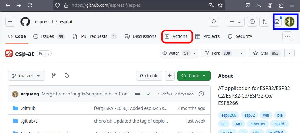 - Access the ESP-AT repository at the following URL https://github.com/espressif/esp-at.