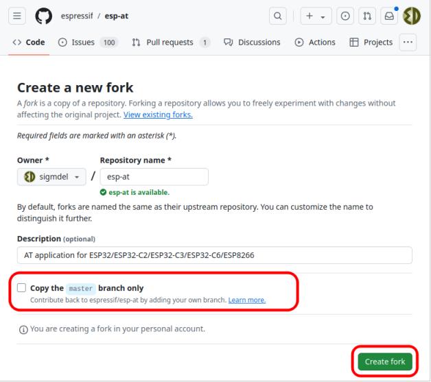 branch only box before clicking on the Create Fork button. - Select the newest ESP8266 branch
