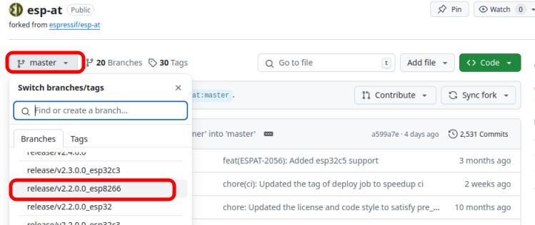 branch button at left and scroll down the list of branches until the firstreleases/vXXXXX_esp8266