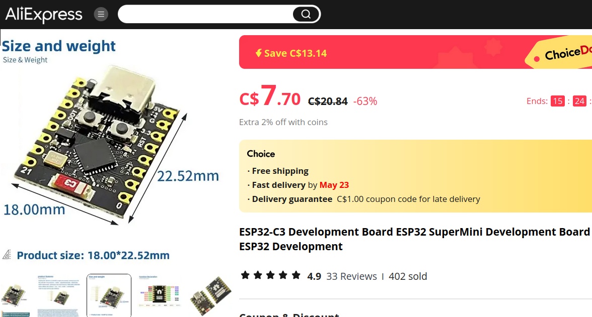 I will confess to a préjugé favorable (a positively prejudiced opinion) when it comes to XIAO series boards. Their quality and consistent form factor make them a favourite of mine. Shipping costs is often a hurdle with Seeed products, but there are sales with free shipping every now and then. The XIAO may be cheaper that some Super Mini C3s on those occasions.