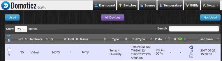 Puis, après un court délai, l'image du capteur devrait maintenant refléter les nouvelles valeurs pour la température, l'humidité et le niveau d'humidité.Au lieu d'utiliser un navigateur Web, un message MQTT peut être envoyé en supposant que le matériel MQTT a été installé dans Domoticiz.