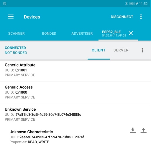 Given my limited knowledge of Bluetooth, be it Low or High Energy, it was loath to use the BLE library contained in the ESP32 Arduino core. Thankfully, there are numerous examples to be found, some of which were useful for a neophyte.